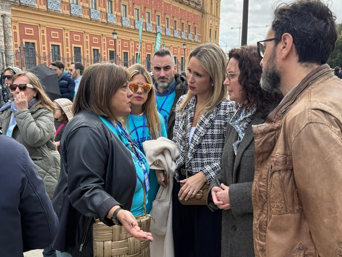 La secretaria de Educación del PSOE-A, Patricia Alba, ha ratificado el respaldo socialista a las escuelas infantiles y sus reivindicaciones sumándose junto a la portavoz de Desarrollo Educativo del Grupo Parlamentario Socialista, Susana Rivas, y más responsables socialistas, a las protestas del sector ante la sede de la Presidencia de la Junta en San Telmo.