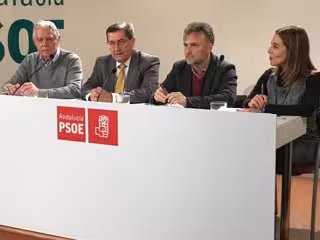 El portavoz del Grupo Parlamentario Socialista de Andalucía, José Fiscal; la portavoz de la Comisión de Educación en el Parlamento, Beatriz Rubiño; el secretario del PSOE de Granada, José Entrena, y el secretario de educación del PSOE-A, Francisco Menacho - PSOE