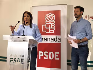 La secretaria de Política Municipal del PSOE de Granada, Olga Manzano, junto al parlamentario andaluz socialista Juan José Martín Arcos, ha mostrado su "preocupación" por "la pérdida de respaldo que sufre esta tierra en las primeras cuentas elaboradas y presentadas por el Gobierno andaluz de PP y Cs".