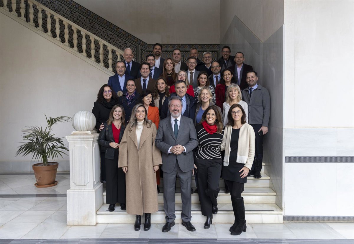 Foto de familia del Grupo Socialista en el Parlamento andaluz, presidido por Juan Espadas. (Foto de archivo). - MARCELO DEL POZO/PSOE-A