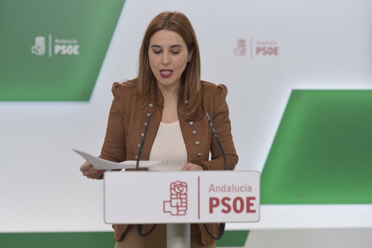 La portavoz de Educación del PSOE-A en el Parlamento andaluz, Beatriz Rubiño, en rueda de prensa. - PSOE-A