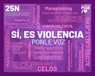 El PSOE de Andalucía ha anunciado este jueves el lanzamiento de una campaña con motivo del Día Internacional por la Eliminación de la Violencia sobre las Mujeres que se conmemora el 25 de noviembre que, bajo el lema 'Sí, es violencia. Ponle voz', busca "denunciar la violencia machista en sus nuevos formatos, con gran incidencia en el entorno digital y de fuerte repercusión especialmente entre las mujeres más jóvenes".