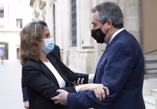 Archivo - El alcalde de Sevilla y secretario general del PSOE-A, Juan Espadas, y la vicepresidenta cuarta y ministra, Teresa Ribera, participan en las jornadas del PSOE sobre recuperación y Pacto Verde Europeo. - María José López - Europa Press - Archivo