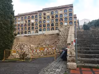 El concejal socialista en el Ayuntamiento de Jaén, Francisco Estepa, ha explicado que hace quince días se vino abajo debido a los efectos del temporal uno de los muros que sostiene una pared lateral de nichos del cementerio. La calle que sirve de acceso a las tumbas quedó impracticable para los familiares y la pared de nichos ha quedado aislada.
