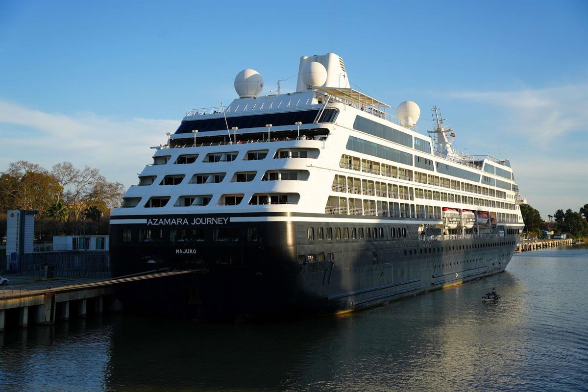 Llegada del Azamara Journey al Puerto de Sevilla, con lo que se inaugura la temporada de cruceros en la capital andaluza. - APS