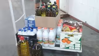 El puesto cedido por el Ayuntamiento de Jaén en el mercado de abastos de San Francisco para la recolección de comida dirigida al Banco de Alimentos ha recogido un total de 547 litros de leche, 56 de aceite y otros productos no perecederos como legumbres, pastas o galletas.