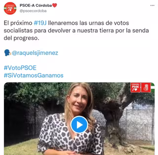 En un vídeomensaje, que ha distribuido el PSOE de Córdoba en sus redes sociales y que Sánchez ha grabado en Posadas (Córdoba), tras reunirse con el Grupo de Desarrollo Rural Medio Guadalquivir, la ministra ha asegurado que la cita electoral del 19 de junio es "importante para los andaluces", por lo que ha llamado a la "movilización ciudadana", ya que "se trata de elegir y decidir el futuro de esta tierra, entre un gobierno de derechas y un gobierno que trabaje por los derechos".