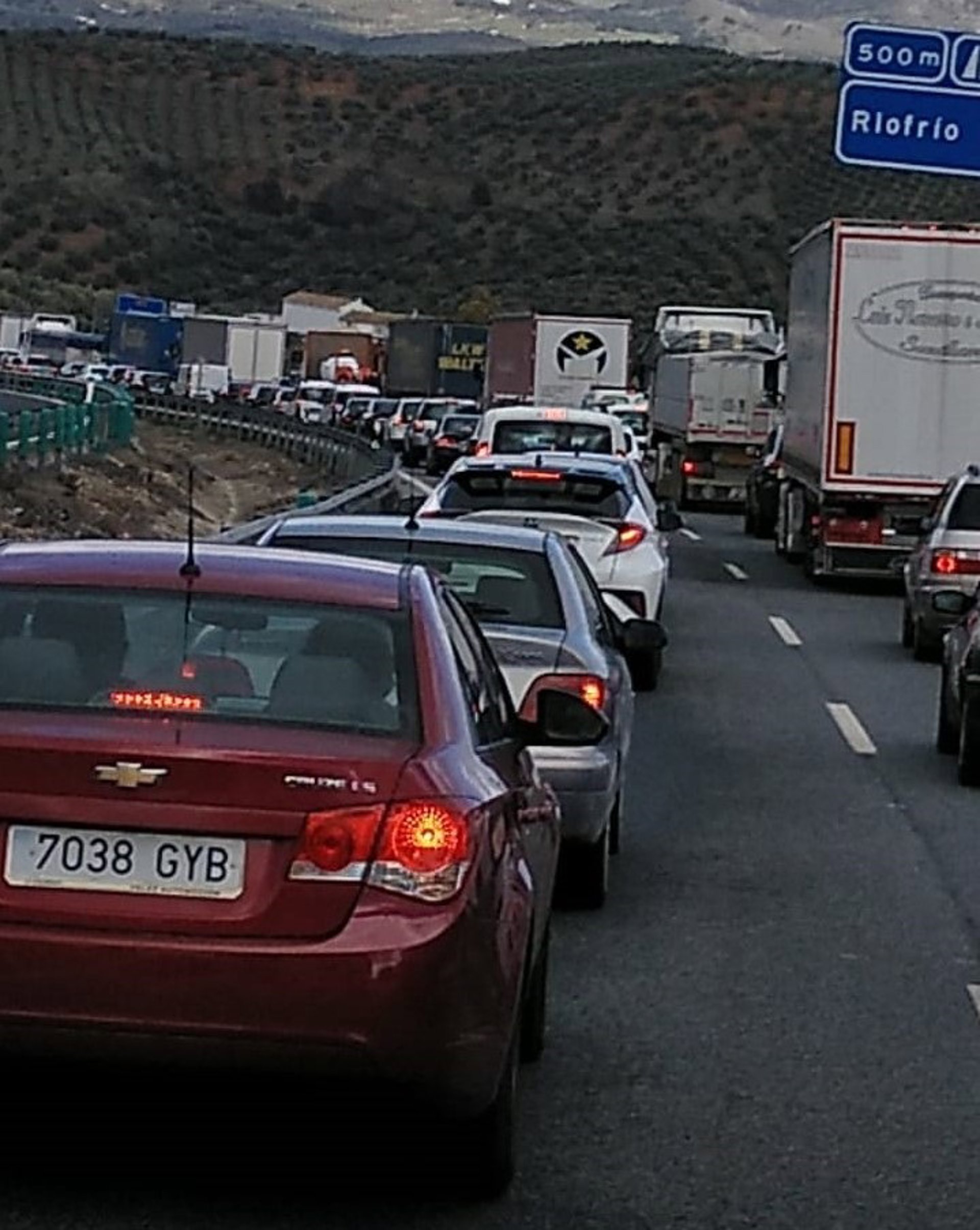 Las precipitaciones y los trabajos efectuados por los servicios de mantenimiento de la vía han provocado fuertes retenciones en esta parte de la carretera durante toda la mañana, que, en el momento de la reapertura al tráfico en todos sus carriles, eran de entre 2,5 y tres kilómetros en dirección a Almería. Había quedado anteriormente sin efecto el desvío por Riofrío que se había abierto en un primer momento.