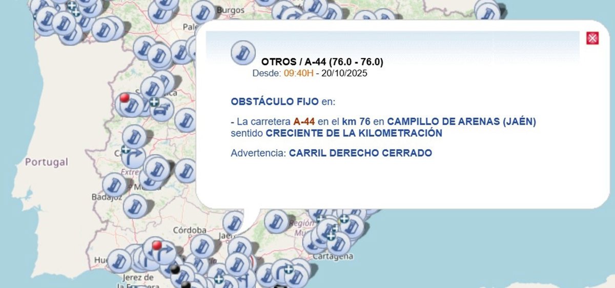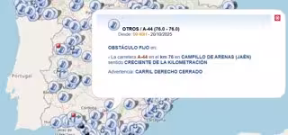 Incidencia en la A-44 recogida en la página web de la DGT. - EUROPA PRESS