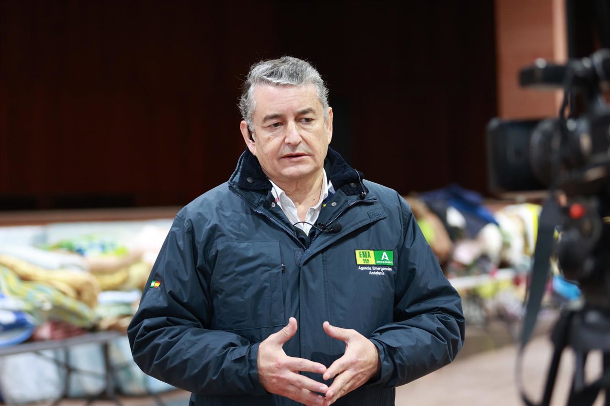 El consejero de Sanidad, Presidencia y Emergencias de la Junta de Andalucía, Antonio Sanz, atiende a los medios desde la caseta municipal de Adamuz. - Rocío Ruz - Europa Press