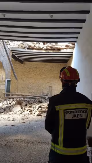 Los bomberos de Jaén tuvieron que intervenir en la iglesia de La Magdalena a principios del mes de enero después de que parte de la techumbre de la galería que rodea el patio de abluciones se hubiera derrumbado. El patio es un anexo al templo y es una de las construcciones más antiguas de la ciudad.