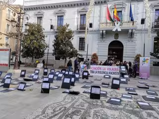 La asociación de mujeres La Volaera ha recordado este lunes con 80 réplicas de lápidas ante el Ayuntamiento de Granada a "todas" las víctimas de violencia hacia la mujer, partiendo de la base, como ha indicado su presidenta, María Martín Romero, en el manifiesto leído en el acto simbólico, que no "sólo cuentan los feminicidios a manos de parejas o exparejas".