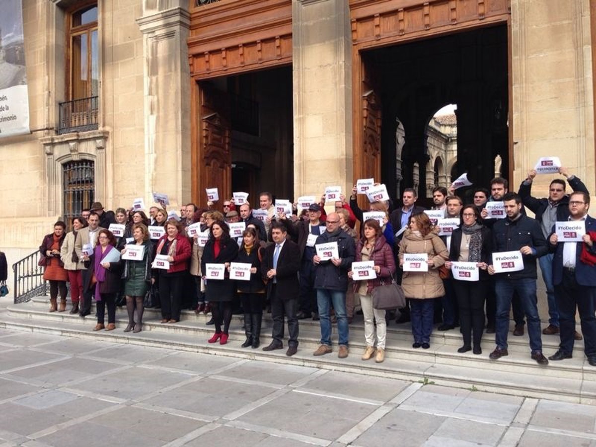 Representantes del PSOE de Jaén han asistido este martes en la Diputación Provincial al debate de una moción contra la reforma de la ley del aborto que promueve el Gobierno central y, a continuación, han participado en una concentración en señal de protesta por la nueva norma planteada por el Ejecutivo.