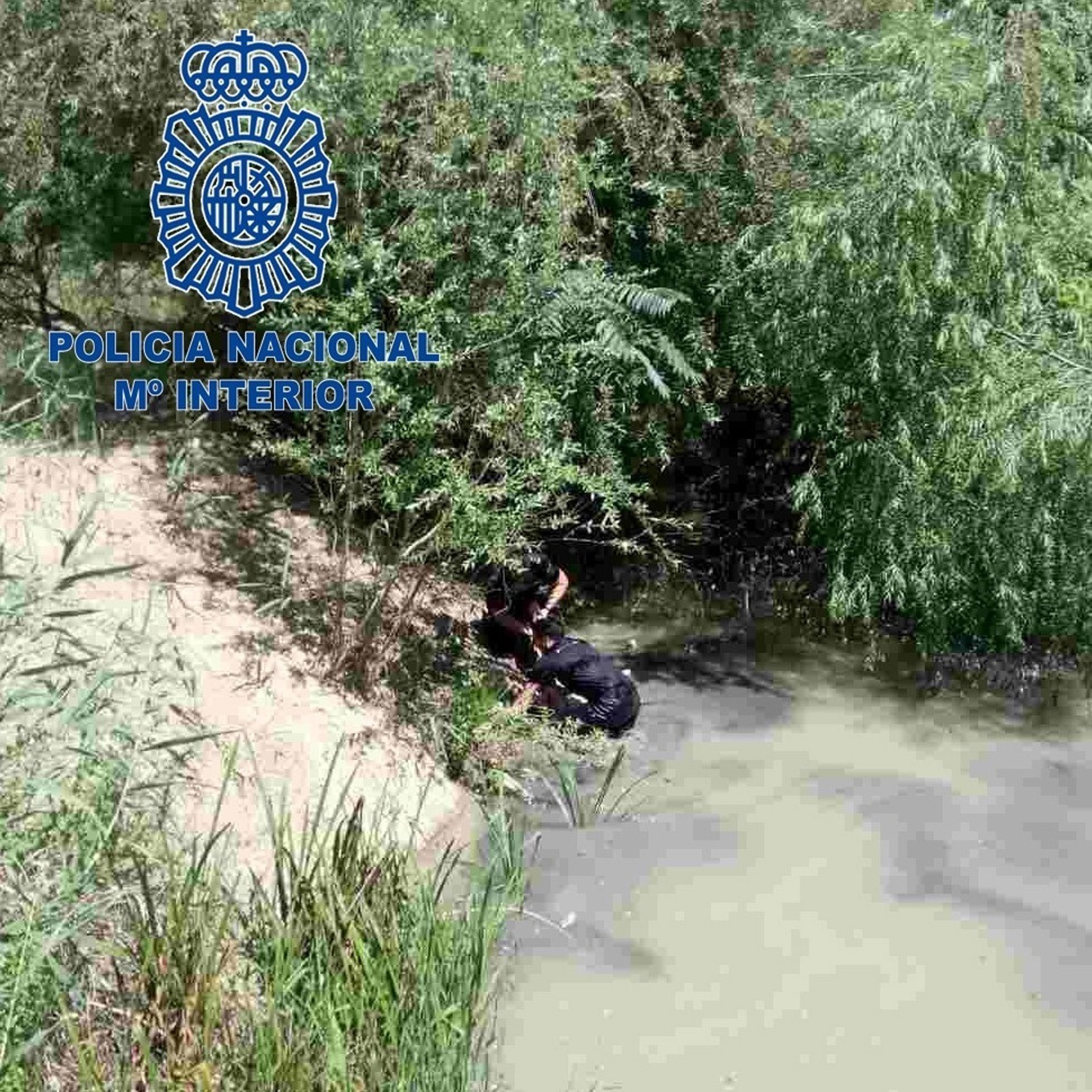 En ese momento, el agente que se percató de los ruidos, se apeó de su moto para verificar de donde procedía, introduciéndose a pie por una zona enfangada entre la maleza, observando cómo a unos 30 metros de la orilla en el cauce del río se encontraba un hombre.