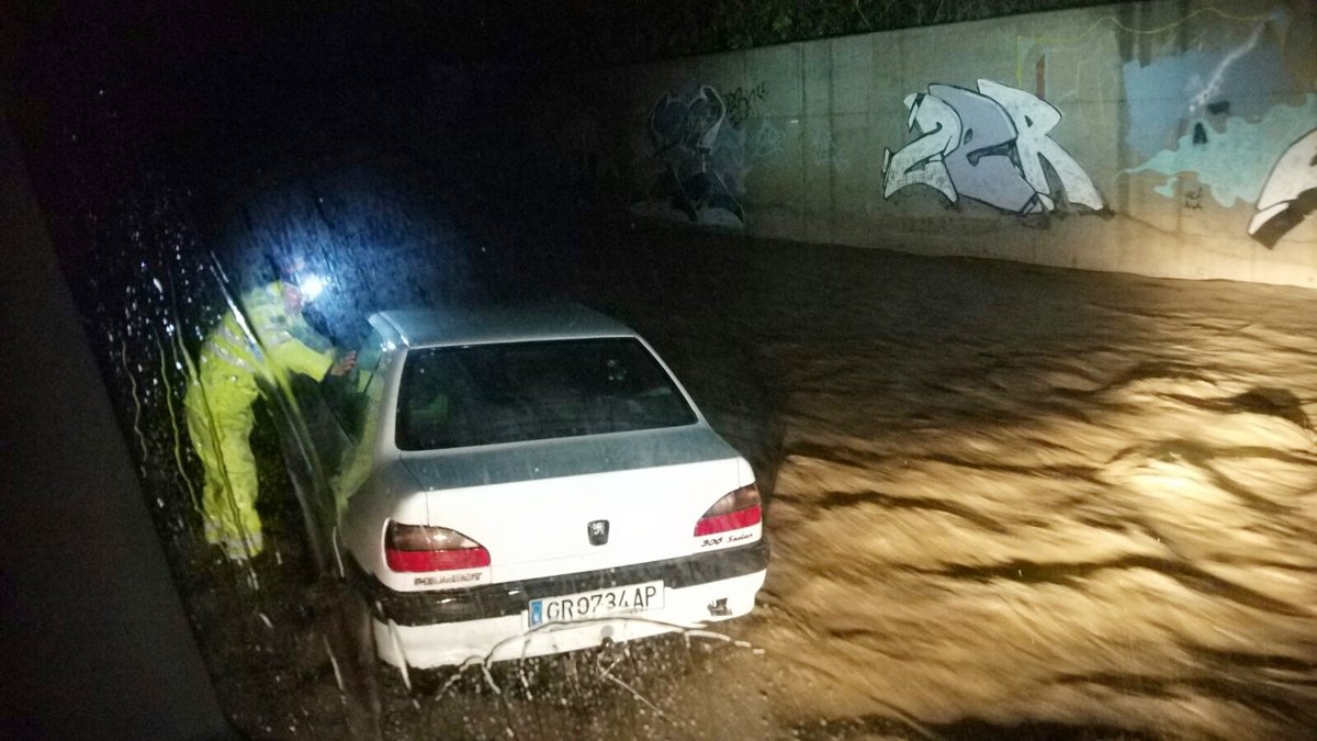 Bomberos de Almuñécar (Granada) han rescatado al conductor de un vehículo cuando intentaba cruzar el cauce del Río Verde, a la altura de la localidad sexitana.