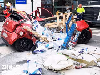 El suceso se ha producido a las 17,25 horas en la calle Arabial cuando la carga de un camión grúa que transportaba un palet de sacos ha caído sobre un coche que circulaba en esos momentos por la vía. Así lo han relatado los numerosos testigos que presenciaron el siniestro y llamaron al teléfono de Emergencias 112 para dar la voz de alerta.