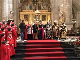 A continuación, se han dirigido todos a la catedral, donde han sido recibidos por el obispo de Jaén, Amadeo Rodríguez, y han realizado una ofrenda. Además, los Reyes Magos han atendido a niños y mayores en el sagrario del templo, un gesto novedoso este año con el que poner en valor el templo en su reconocimiento patrimonial.