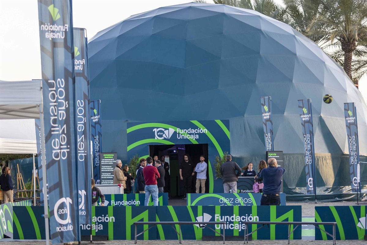 En el interior del domo, el visitante podrá recorrer los principales hitos en la historia de la Fundación Unicaja con una muestra retrospectiva y conocer sus líneas de actuación en cultura y patrimonio, educación, medio ambiente, acción social, investigación, innovación y emprendimiento a través de contenidos audiovisuales. Las nuevas tecnologías tienen un gran protagonismo en el Espacio Fundación Unicaja, que contará con una exposición inmersiva, proyecciones 360, maquetas inteligentes 3D y gafas de realidad virtual.