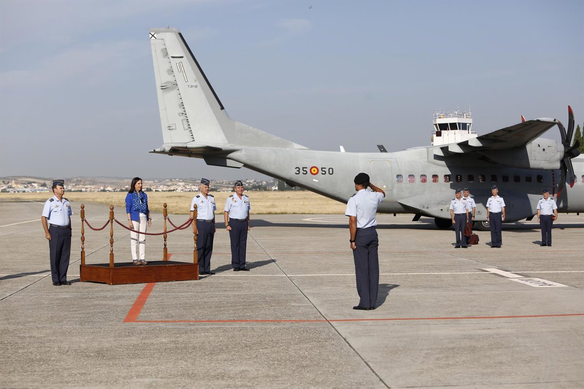 La ministra ha aterrizado en la base aérea en torno a las 10,20 horas a bordo de un avión T21 del Ejército del Aire en el que ha estado acompañada por el Jefe de Estado Mayor del Aire, general de aire Javier Salto Martínez-Avial.