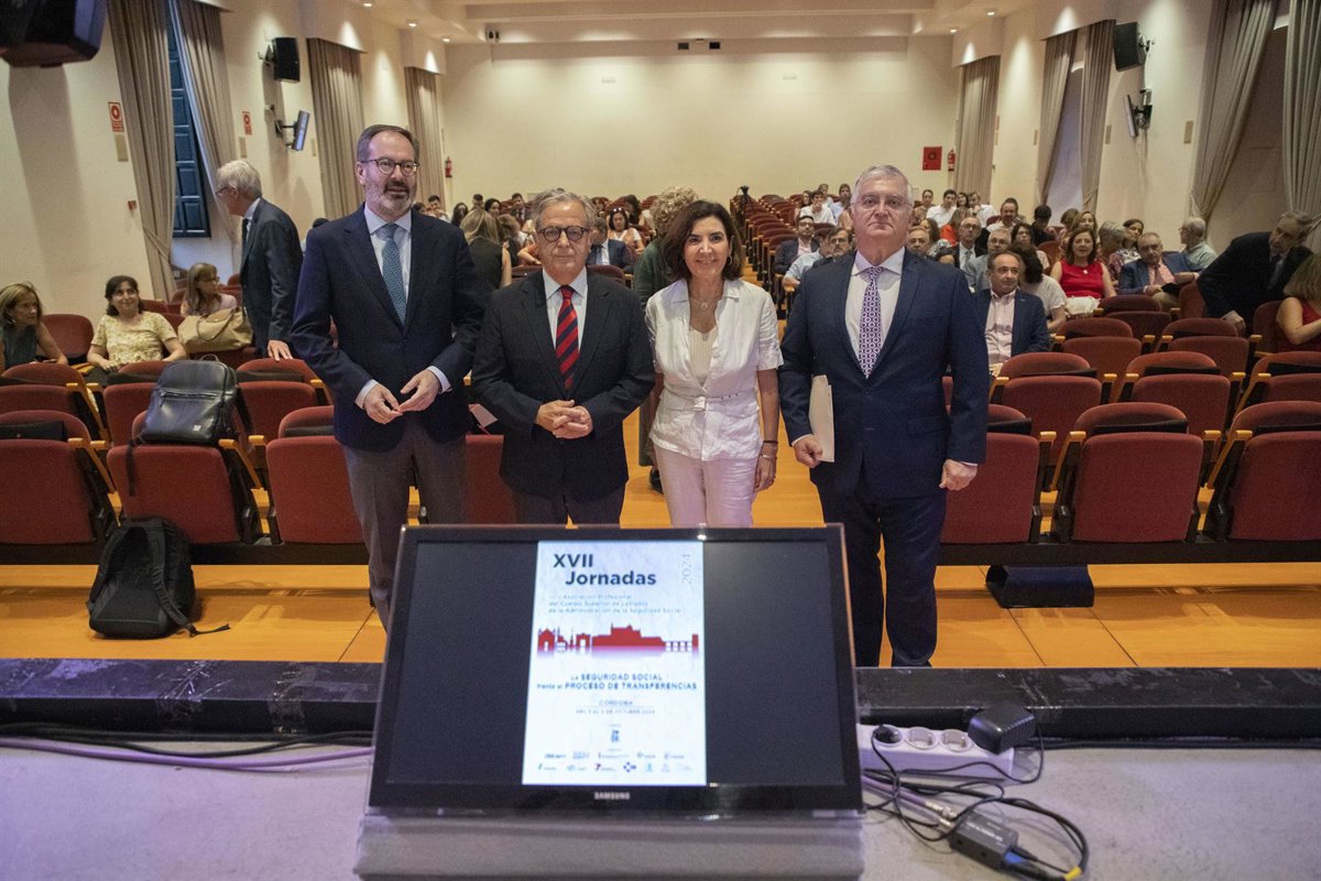 La consejera de Empleo, Empresa y Trabajo Autónomo, Rocío Blanco, ha participado este viernes en la inauguración de las XVII Jornadas organizadas por la Asociación Profesional del Cuerpo Superior de Letrados de la Administración de la Seguridad Social, que se celebran hasta este sábado en el Palacio de la Merced, sede de la Diputación de Córdoba, y que en esta edición tratan el tema de 'La Seguridad Social frente al proceso de transferencias'.