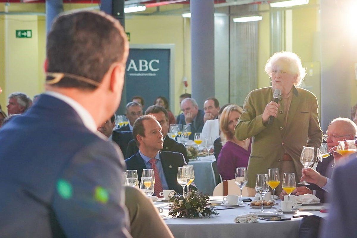 El fundador del Partido Andalucista, Alejandro Rojas Marcos, este martes durante su propuesta al presidente de la Junta de Andalucía, Juanma Moreno, en el Foro ABC en Sevilla. - FRANCISCO OLMO/EUROPA PRESS