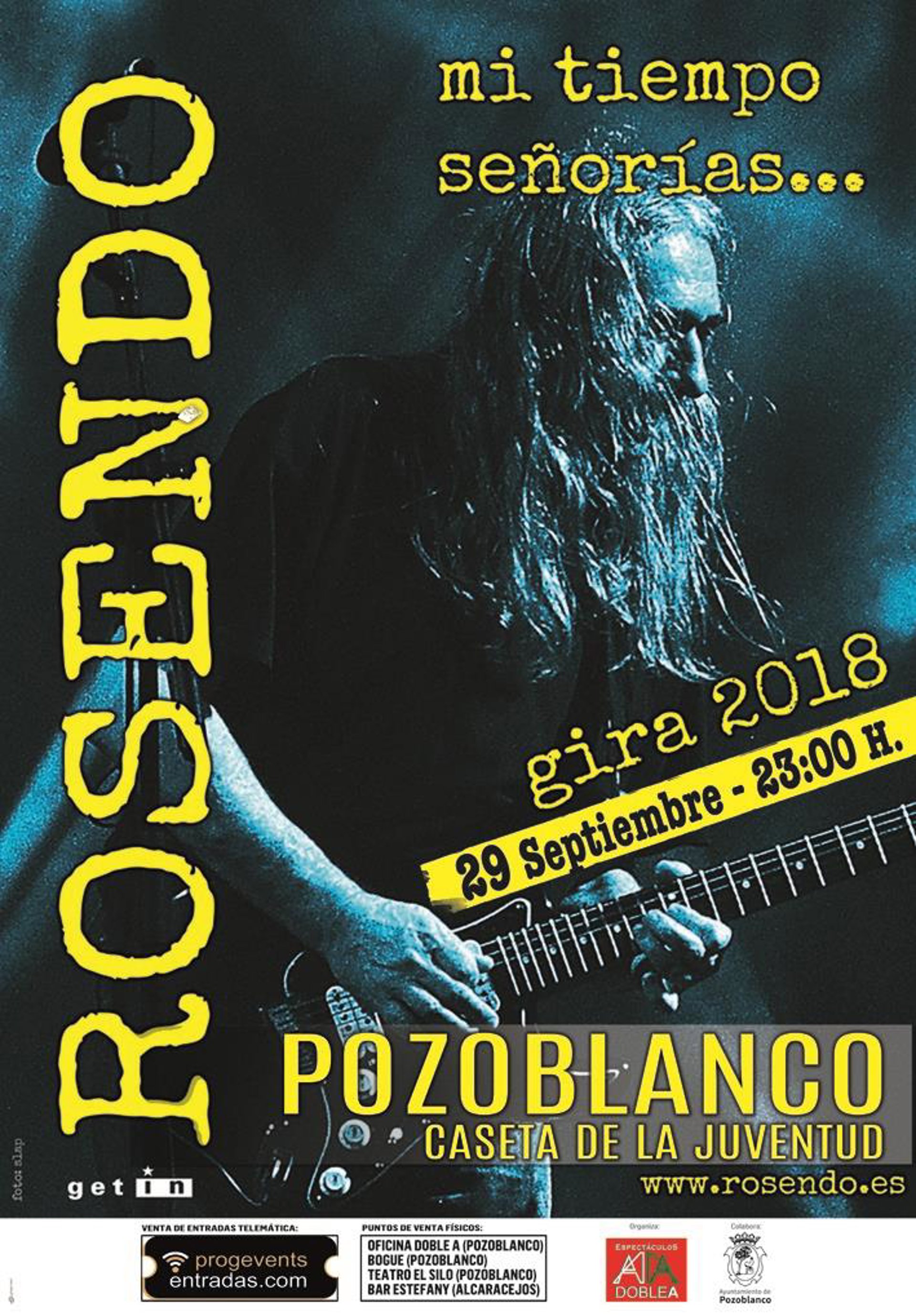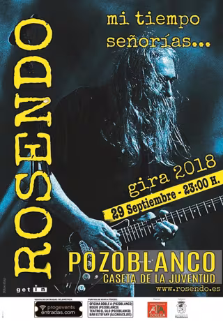 La venta de entradas para el concierto de Rosendo se pondrán a la venta en 'www.progeventsentradas.com' o en las oficinas de Doble A, Cafetería Bogue, Teatro El Silo en Pozoblanco y en Cafetería Estefany en Alcaracejos (Córdoba).