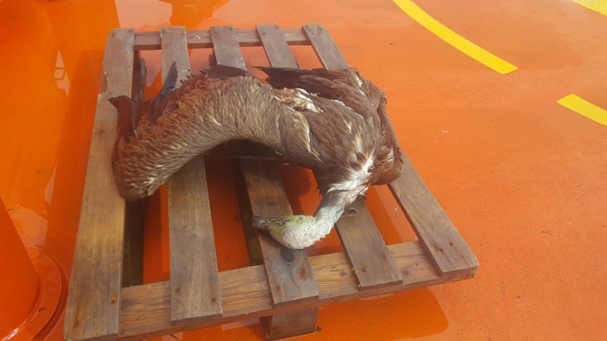 Buitre fallecido recuperado en el puerto pesquero de Motril - TWITTER DE SALVAMENTO MARÍTIMO