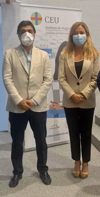 La directora del Instituto de Posgrado de la Fundación San Pablo Andalucía CEU, María Luisa Ríos, y el presidente de la Secee, el doctor José Miguel Barquero - FUNDACIÓN SAN PABLO ANDALUCÍA CEU