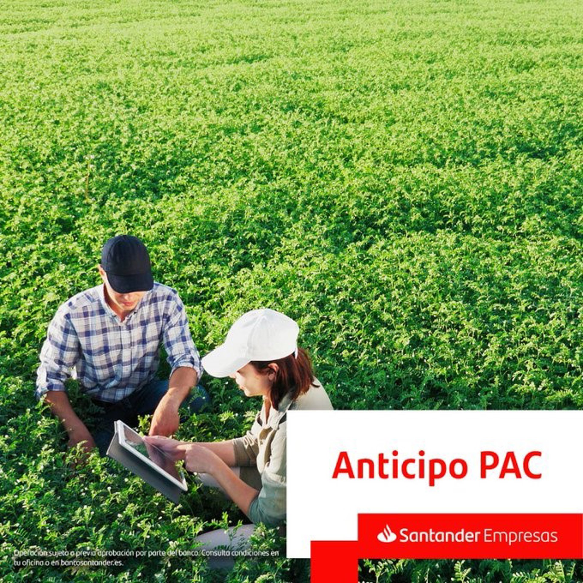 Santander respalda al sector agroalimentario mediante la tramitación de las Líneas de Financiación MAPA (Ministerio de Agricultura, Pesca y Alimentación) con aval de Saeca. Esta financiación, de hasta 40.000 euros y con un plazo de hasta cinco años, está destinada a los titulares de explotaciones agrarias, ya sean personas físicas o jurídicas, que suscriban dichos avales.