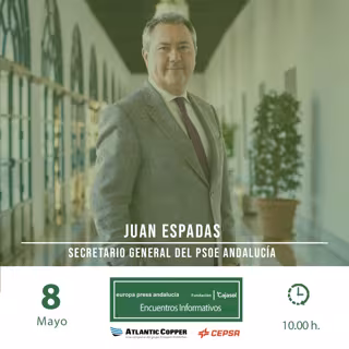 El encuentro informativo arrancará a partir de las 10.00 horas en la sede de la Fundación Cajasol con una intervención inicial del propio Espadas que dará paso a un coloquio posterior que incluirá un turno de preguntas que formulará el delegado de Europa Press Andalucía, Francisco Morón.