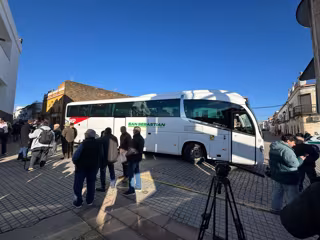 Autobús fletado para trasladar a familiares de afectados desde el Centro de Mayores de Adamuz al Centro Cívico Poniente Sur de Córdoba. - JOAQUÍN CORCHERO/EUROPA PRESS
