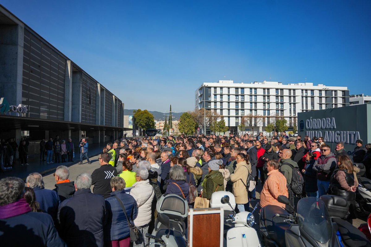El sector ferroviario de Córdoba se ha unido este martes en una respetuosa concentración a las puertas de la Estación Córdoba-Julio Anguita para mostrar su pesar por las víctimas mortales del accidente ferroviario ocurrido el domingo en la localidad de Adamuz y en solidaridad con las familias de los fallecidos --41 personas registradas hasta primeras horas de este martes-- y heridos en el siniestro.