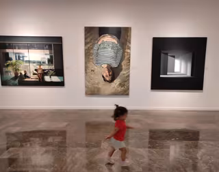 Archivo - Una niña juega en la sala con obras premiadas en el Concurso de Pintura Homenaje a Rafael Zabaleta 2021. - EUROPA PRESS - Archivo