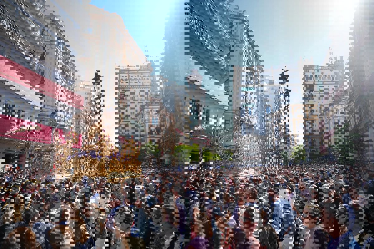 Itinerario: San Luis, Relator, Alameda de Hércules (carril de emergencia), Trajano, Conde de Barajas y Jesús del Gran Poder, Plaza del Duque (lado este), carrera oficial, Cardenal Carlos Amigo, Alemanes, Argote de Molina, Placentines, Francos, Cuesta del Rosario, Jesús de las Tres Caídas, Odreros, Boteros, Sales y Ferré, Plaza del Cristo de Burgos (lado oeste), Doña María Coronel, Bustos Tavera, Plaza de San Marcos, San Luis y Plaza del Señor de la Resurrección.