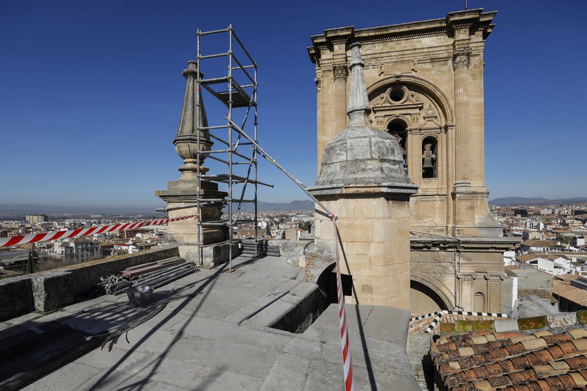 Archivo - Operarios interviniendo y reparando los pináculos y zonas afectadas de la Catedral de Granada en febrero de 2021, tras los terremotos sucedidos en semanas anteriore - Álex Cámara - Europa Press - Archivo