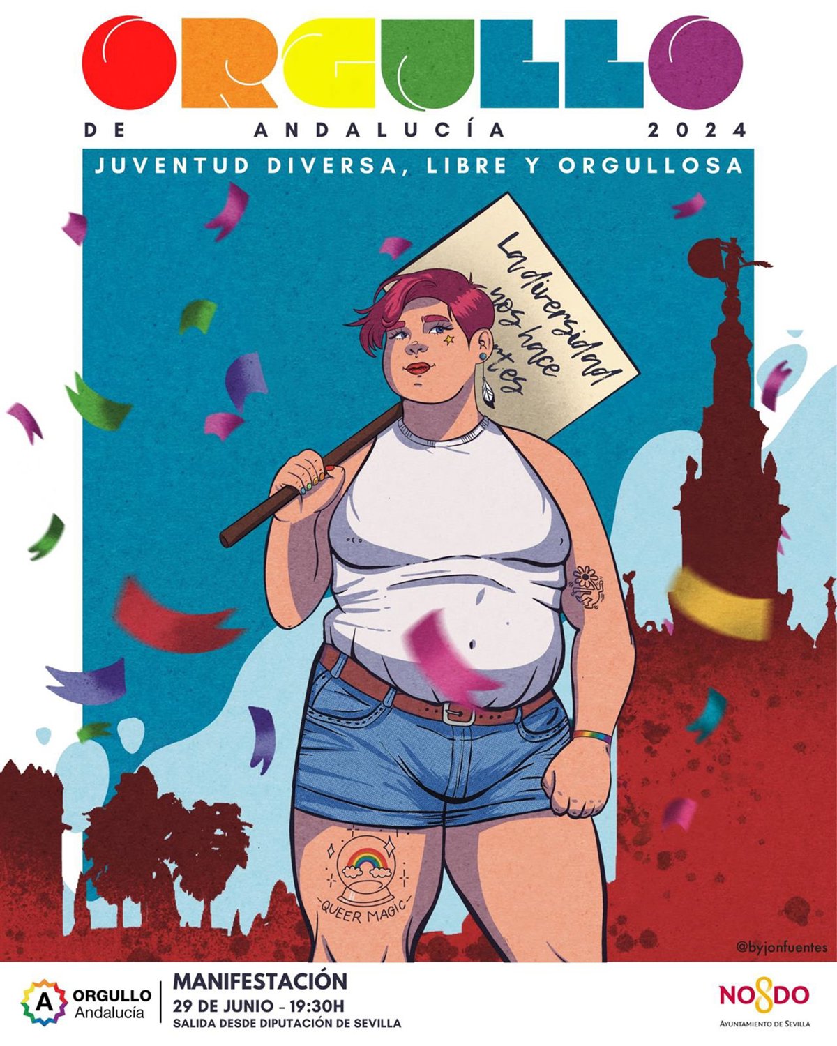 En esta ocasión, el evento será anunciado con un cartel diseñado por el artista Jon Fuentes, quien "ha querido capturar el espíritu vibrante y empoderado del colectivo Lgtbiqa+", según ha recogido la Federación Orgullo Lgtbi Andalucía en un comunicado.
