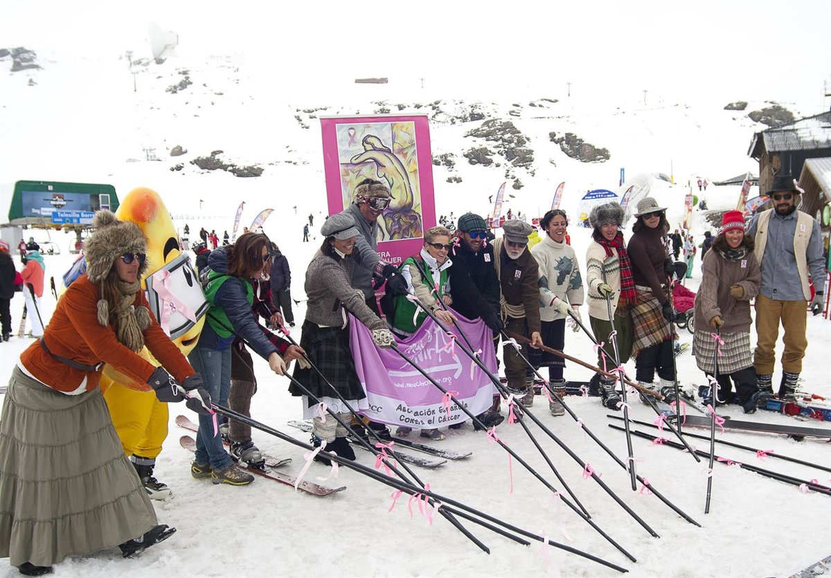 Asimismo, la peña 'telemarkera' Rikitaum de Sierra Nevada, con María José Rienda a la cabeza, han difundido por la estación el significado del lazo rosa, que portaban todas ellas, animando a participar en la carrera de fondo contra el cáncer de mama que desde hace seis años se celebra por las calles de Granada a principios de verano.