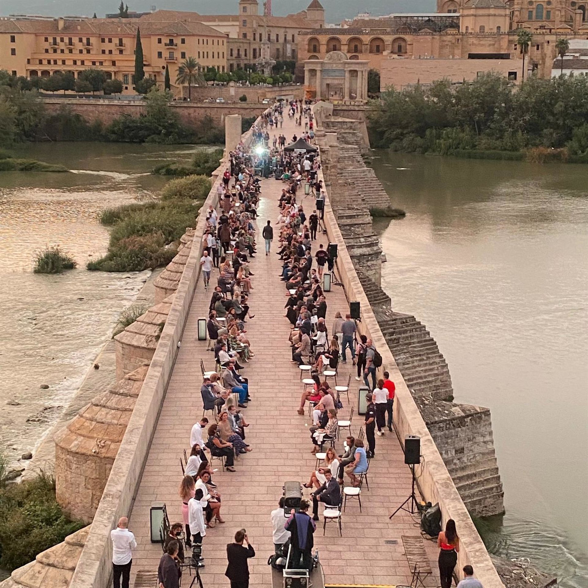 El Puente Romano de Córdoba ha sido escenario, por primera vez en la historia de la ciudad, de un pase de moda benéfico organizado por Silbon en colaboración con el Ayuntamiento de la ciudad. El evento, que comenzaba a las siete de la tarde de este viernes, ha contado con aforo limitado para garantizar las medidas determinadas por el protocolo Covid. En total 200 localidades, que fueron adjudicadas por orden de inscripción en el enlace que se hizo público y que expiaba con la adjudicación de la última plaza libre.
