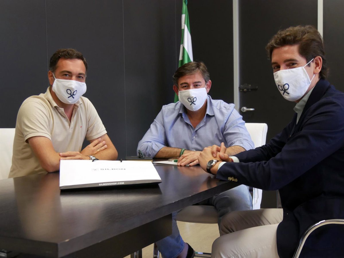 De izquierda a derecha : consejero de Córdoba CF, Miguel Gómez Huertas, el consejero delegado del Córdoba CF, Javier González Calvo, y Pablo López, CEO de Silbón. - SILBON.