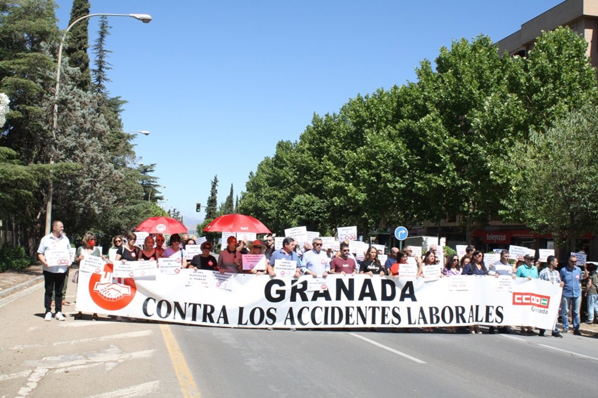 Concentración de sindicatos tras la muerte de un trabajador en Granada. - CCOO/UGT