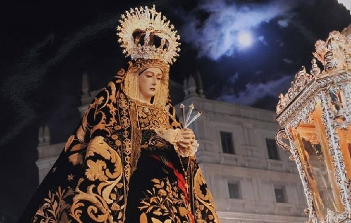 Así, la dolorosa, obra de Pedro Mena en el XVII, fue ataviada al modo del principios del siglo pasado, también en conmemoración de la distinción de la Curia, por la que salió en rosario vespertino en otoño de 2018.