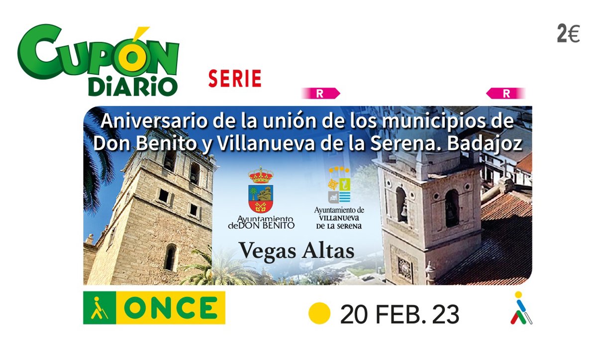El sorteo de la ONCE de este 20 de febrero estaba dedicado al aniversario de la unión de los municipios de Don Benito y Villanueva de la Serena en Badajoz y ha llevado el resto de sus premios a Galicia.