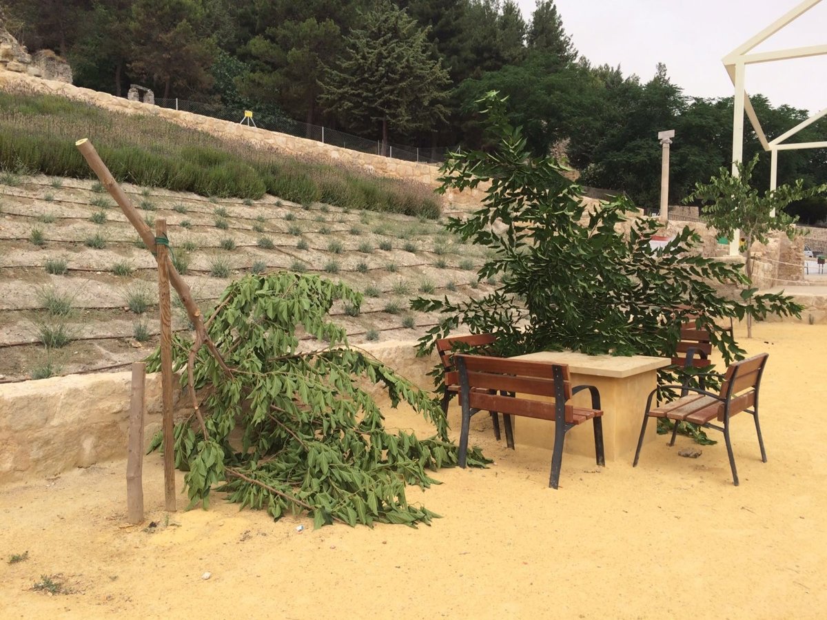 El suceso se ha producido en un espacio de esparcimiento para familias situado a las faldas de la Fortaleza de la Mota. El concejal alcalaíno Custodio Valverde, junto con personal del Área de Obras y Servicios, se ha desplazado a la zona para valorar los daños causados.