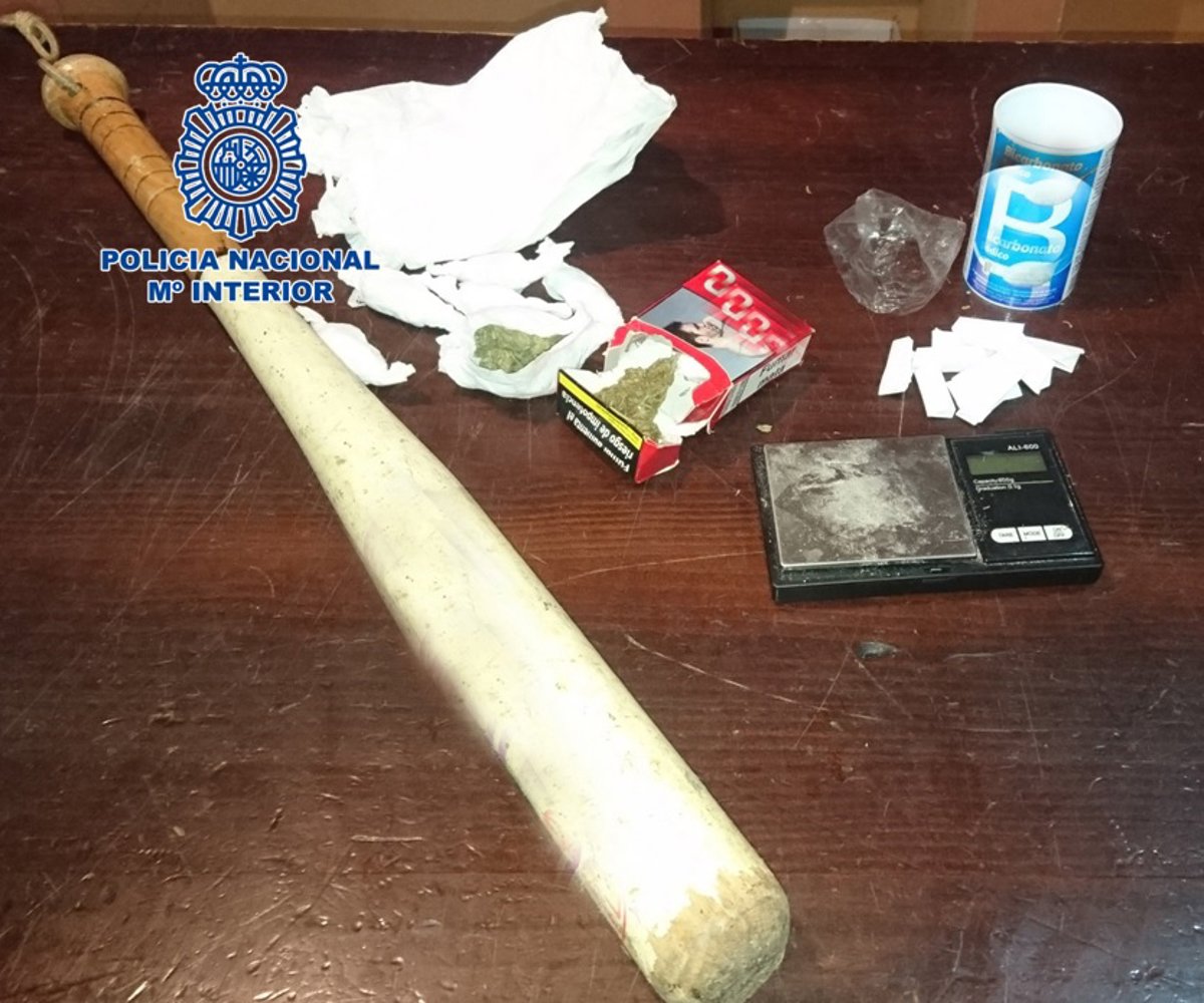 Ante las sospechas que despertaron estas personas, los policías realizaron una inspección del establecimiento y localizaron ocultos en diferentes puntos del mismo varios envoltorios de pequeño tamaño con diversas dosis, tanto de marihuana, como de cocaína, así como un bate de béisbol y dinero en efectivo. Ante ello, detuvieron a dos personas como presuntas autoras de un delito contra la salud publica.