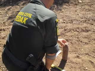 Desplazados miembros del equipo Tedax-NRBQ de la Guardia Civil al lugar, comprobaron que se trataba de un proyectil de artillería tipo 'Schenneider' de 70 mm con unas dimensiones de 35 centímetros de largo y diez de diámetro que fue neutralizado in situ por estos especialistas.