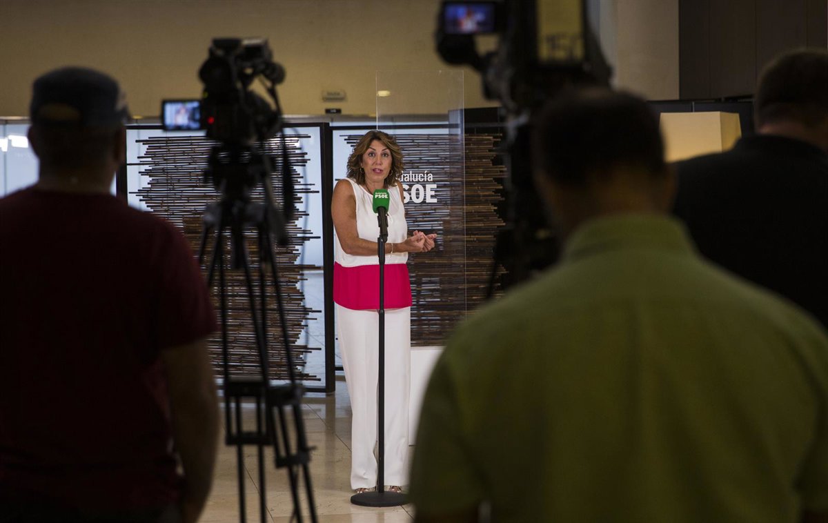La secretaria general del PSOE de Andalucía, Susana Díaz, atiende a los medios de comunicación antes de participar en la reunión de la Comisión Ejecutiva Regional. En el hotel NH Collection, (Sevilla, Andalucía, España), a 31 de agosto de 2020. - María José López - Europa Press