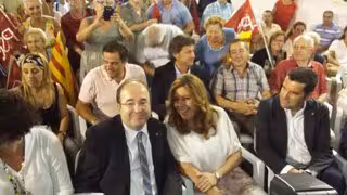 Antes de abandonar la sala del acto para regresar a Sevilla, la presidenta de la Junta ha mantenido una charla durante unos minutos con el líder de los socialistas catalanes.
