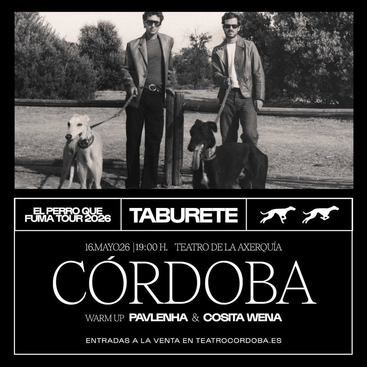 El grupo madrileño Taburete, conformado por Guillermo 'Willy' Bárcenas y Antón Carreño, llegará el próximo 16 de mayo, a las 19,00 horas, al Teatro de la Axerquía de Córdoba dentro de su gira 'El perro que fuma tour 2026', una cita que contará con las actuaciones previas de los artistas Pavlenha y Cosita Wena.