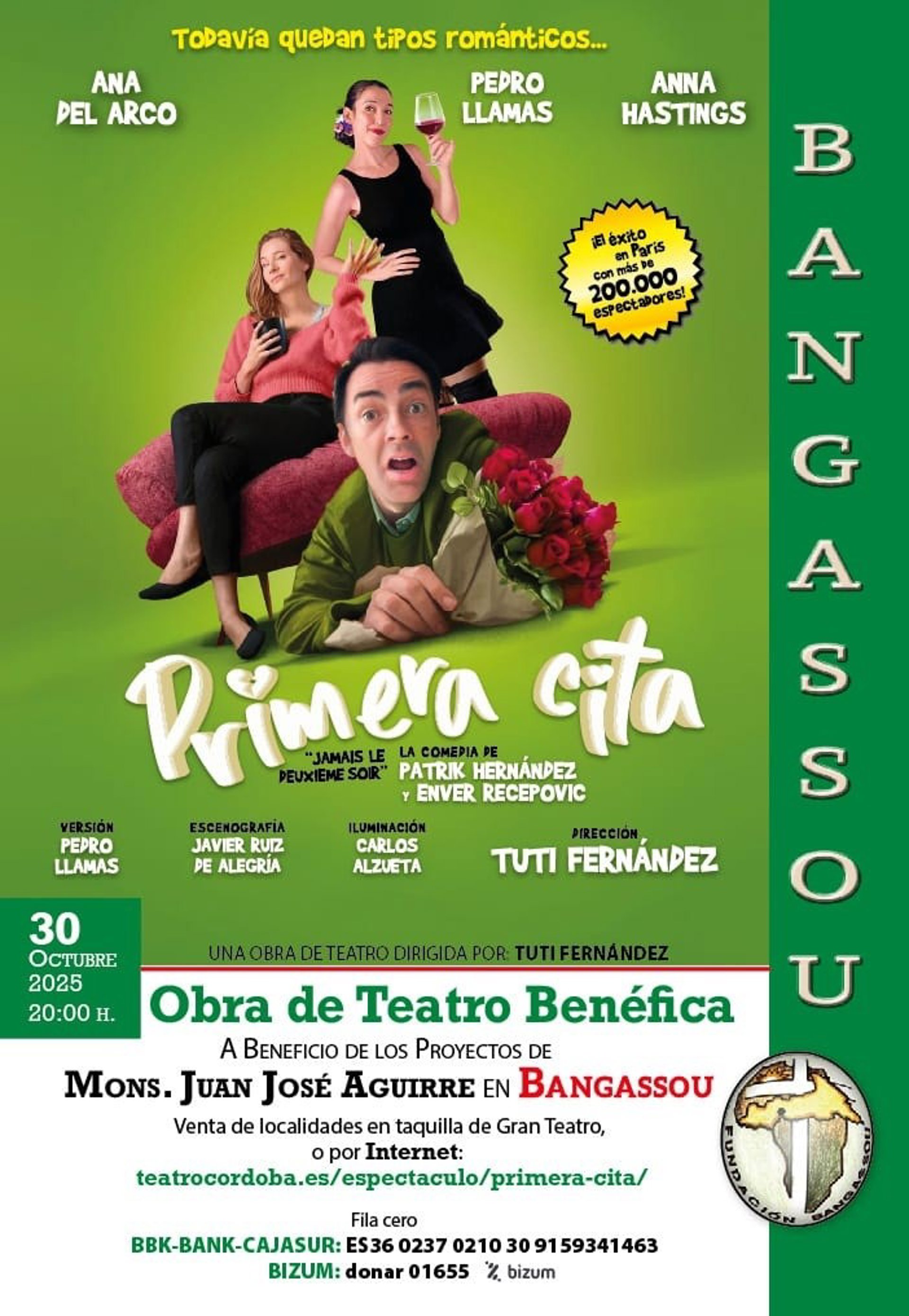 Cartel de la obra 'Primera Cita' del día 30 de octubre en el Teatro Góngora de Córdoba, a beneficio de los proyectos sociales de la Fundación Bangassou. - FUNDACIÓN BANGASSOU