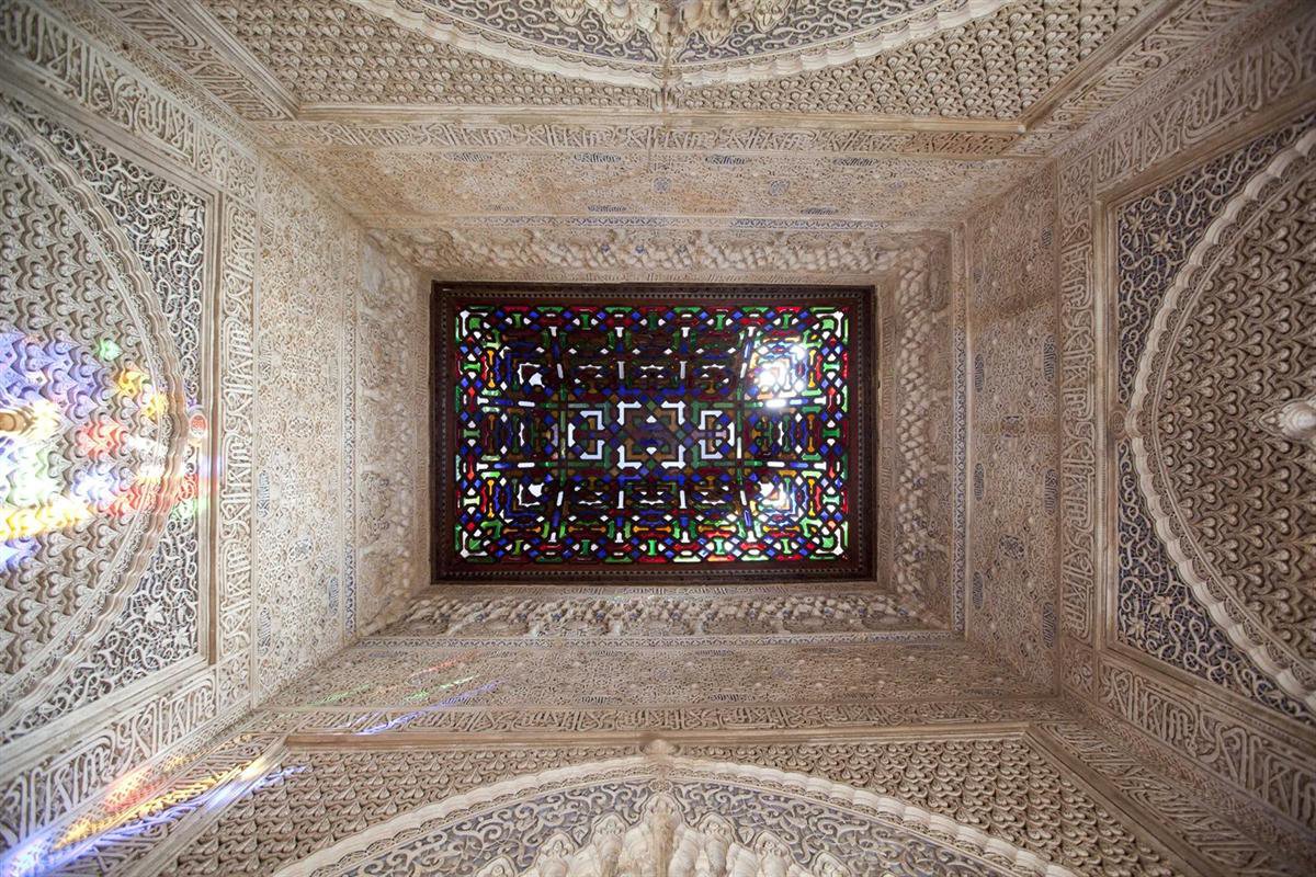 El Servicio de Restauración de Maderas del Patronato de la Alhambra ha sido el encargado de intervenir en este techo, pieza única de estas características que se conserva en el Monumento, que, a modo de linterna cenital, está realizado a base de cristales de colores ensamblados en una estructura abovedada de madera.